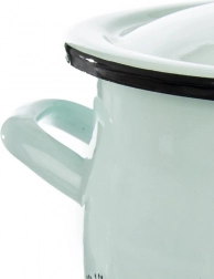 Stijlvolle geëmailleerde pan met deksel met een inhoud van 2,3 l en een diameter van 16 cm, ideaal voor dagelijks koken en stoven. Het hoogwaardige geëmailleerde oppervlak is vriendelijk voor de gezondheid en geschikt voor allergiepatiënten. Geschikt voor gas, elektrisch, keramisch, halogeen en inductie en kan in de vaatwasser.