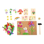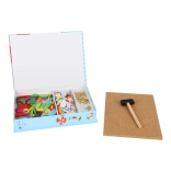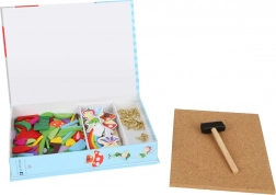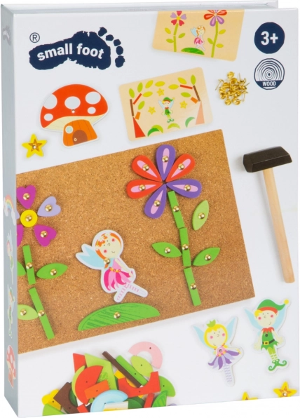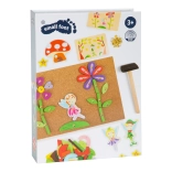 Deze creatieve hamer-set met feeën bezorgt kinderen urenlang knutselplezier. Onderdelen met voorgeboorde gaatjes worden eenvoudig met spijkertjes op het kwaliteitskurkbord bevestigd en vormen sprookjesachtige scènes vol bloemen, feeën en paddenstoelen. Het praktische houten hamertje ligt comfortabel in de hand en het werken ermee is veilig en intuïtief.
