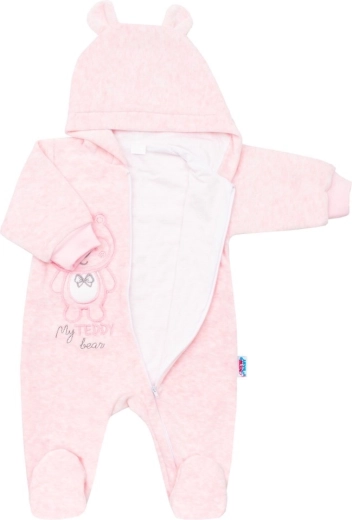 De baby suède overall met capuchon New Baby Sweetheart in een zachte roze kleur is ideaal voor koelere dagen en voor thuis. De schattige berenprint valt in de smaak bij zowel ouders als baby’s en de volledig gevoerde afwerking verhoogt het draagcomfort.