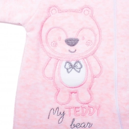 Zoek je een comfortabele en warme onesie voor thuis en voor wandelingen? Deze suède onesie NEW BABY Sweetheart met een lieve beer is gemaakt van kwaliteitsmaterialen die zacht zijn voor de babyhuid. Dankzij de volledige katoenen voering is hij zacht, ademend en aangenaam aanvoelend, en houdt hij tegelijk de warmte goed vast.