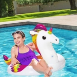 Geniet van zomerse fun met de opvallende en speelse zwemband in eenhoornvorm, die uitstekend drijft, goed vast te houden is en op het water onmiskenbaar schittert. Dankzij het duurzame, geteste vinyl is hij ideaal voor dagelijks waterplezier en heerlijk loungen.
