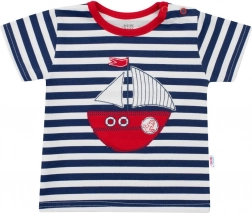 Schattige tweedelige zomerset NEW BABY Marine van hoogwaardige 100% katoen, prettig in comfort én design. Bevat een T-shirt met korte mouwen met maritieme strepen en een boot-applicatie, en een effen korte broek met anker-motief. Zacht katoenen materiaal, praktische sluiting op de schouder en een zachte binnenvoering onder de applicatie ter bescherming van de kinderhuid zorgen de hele dag voor comfort.
