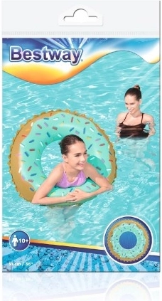 Modern zwemring, ideaal voor in het zwembad of voor een zomervakantie, waar je met deze geweldige ring in het water altijd veel plezier zult hebben. Interessant design: een heerlijke donut waar iedereen jaloers op zal zijn!