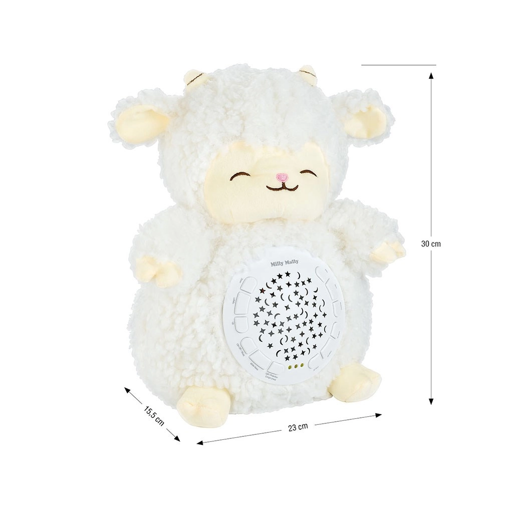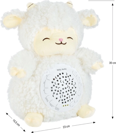 Verander de kinderkamer in een rustige plek om in slaap te vallen. Het pluchen schaap met projector MILLY MALLY projecteert een nachtelijke sterrenhemel en speelt rustgevende melodieën en natuurgeluiden af die kinderen helpen makkelijker in slaap te komen. De zachte uitvoering en het subtiele licht creëren een gevoel van comfort en veiligheid.