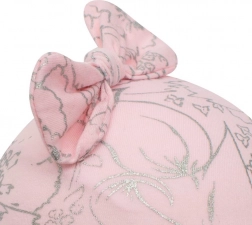 Schattig babymutsje met strik NEW BABY NUNU in roze, ideaal voor dagelijks gebruik. Gemaakt van zachte katoen met elastaan, met een katoenen voering, gevormd over de oortjes en met striklintjes voor een veilige pasvorm. De moderne print zorgt voor stijl en comfort.