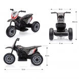Stijlvolle elektrische motor voor de kleintjes met HONDA-licentie, combineert sportief design, veilig rijden en eenvoudige bediening. Na het inschakelen klinkt het geluid van het starten van de motor, de rit wordt aangedreven door een gaspedaal, stabiliteit wordt geboden door grote kunststof wielen met terreinprofiel en stalen assen. De gevormde zitting garandeert comfort, de claxon zorgt voor extra plezier en de accu met oplader is inbegrepen.