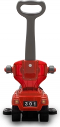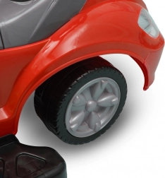 Universele kinderloopfiets 3-in-1 BABY MIX Mega Car in het rood combineert de functies van een loopfiets, loopwagen en duwauto met duwstang. Biedt een veilige uitvoering, een stabiele constructie van kwaliteitskunststof, afneembare voetsteunen, zijkant-beschermbeugels en een stuur met muziekpaneel en claxon. Onder de zitting bevindt zich een praktische opbergruimte voor speelgoed.