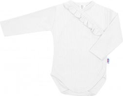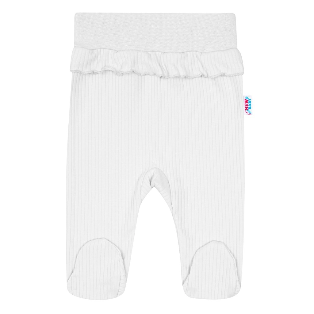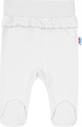 Schattige 2-delige katoenen set New Baby Stripes in het wit, bestaande uit een romper met lange mouwen en half-hoge voetbroekjes. Gemaakt van aangename 100% katoen met een subtiele ribstructuur en fijne ruches, ideaal voor de gevoelige babyhuid. Praktische zijsuiting met drukknoopjes maakt aan- en uitkleden en verschonen eenvoudiger, terwijl de zachte, elastische tailleband van de voetbroekjes niet op het buikje drukt.