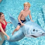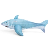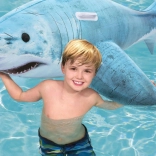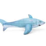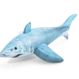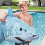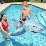 De haai met gedetailleerde print, vinnen en staart valt op in elk zwembad. Het formaat 183 × 102 cm biedt comfort en stabiliteit tijdens het rijden.