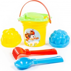 Emmer met zeef, schepje, hark, 2 vormpjes