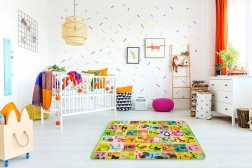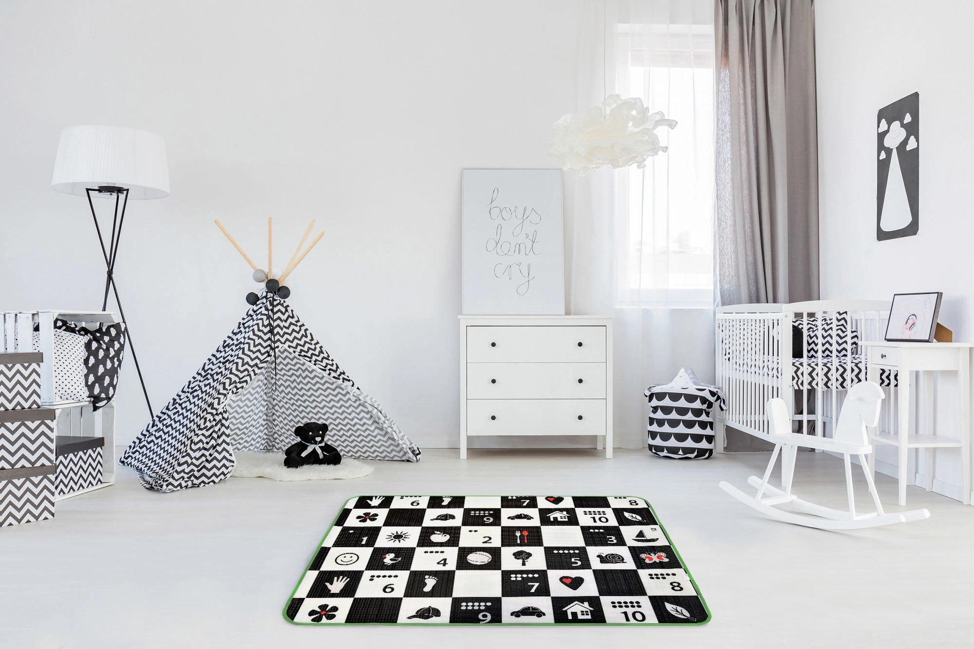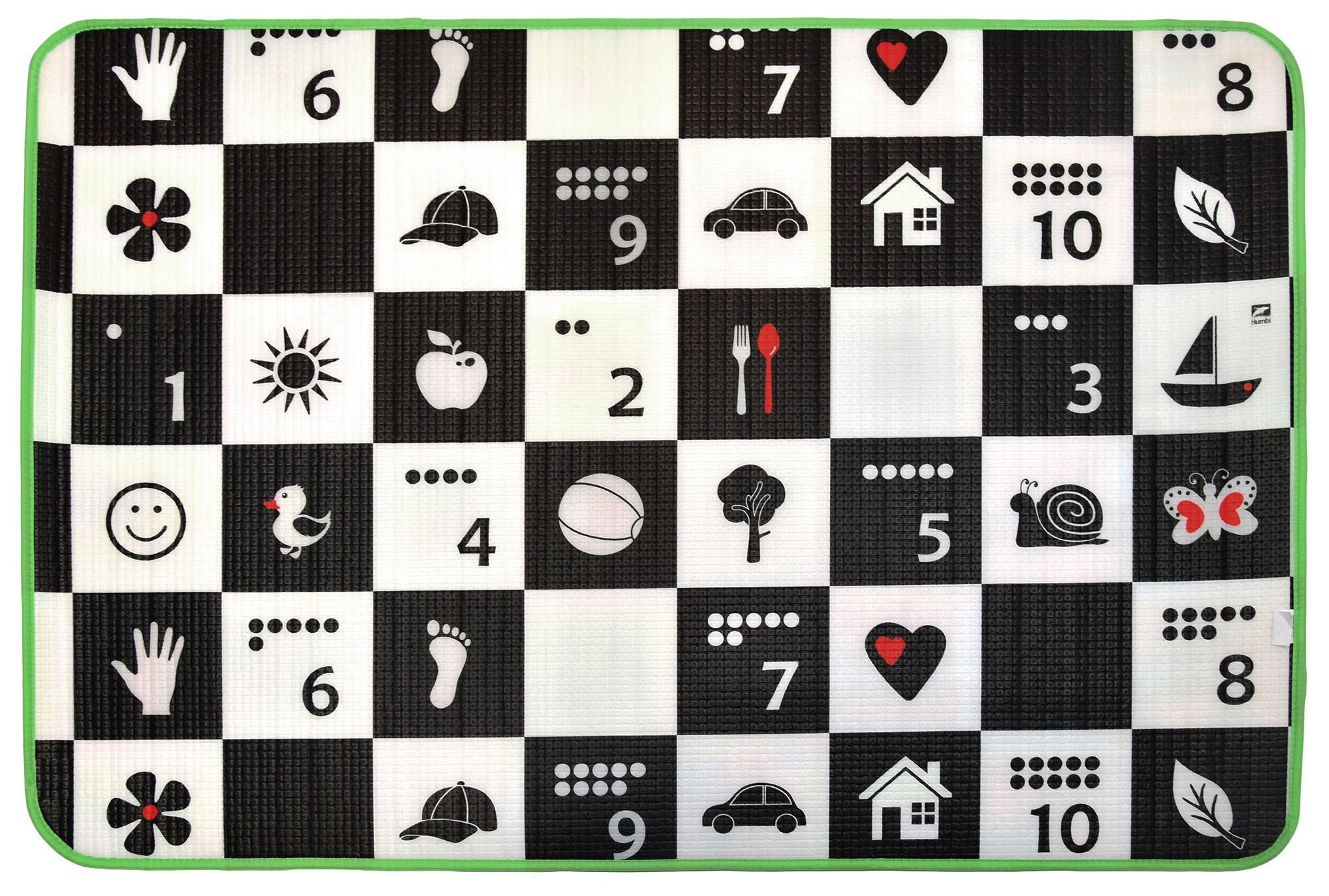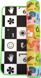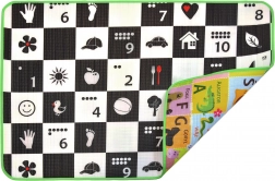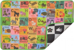 Ontdek een praktische mat voor dagelijks spelen, kruipen en de eerste stapjes. Dankzij de dikte van 1 cm biedt zij uitstekende schokdemping en isolatie tegen koude vloeren. De contrasterende zijde met schaakbord en cijfers 1–10 stimuleert visuele waarneming en eerste telvaardigheden, terwijl het kleurrijke alfabet met dieren de woordenschat en nieuwsgierigheid van kinderen ontwikkelt.