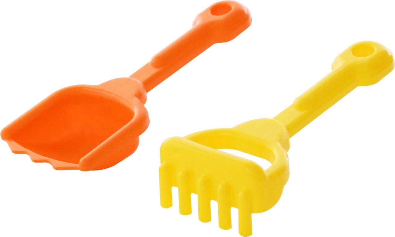 Deze compacte set met schepje en hark is een uitstekende keuze voor dagelijks spelen in de zandbak en aan zee. Dankzij de duurzame kunststof en afgeronde randen is hij veilig voor kinderen en tegelijk stevig genoeg om te graven, vormen en harken in het zand.