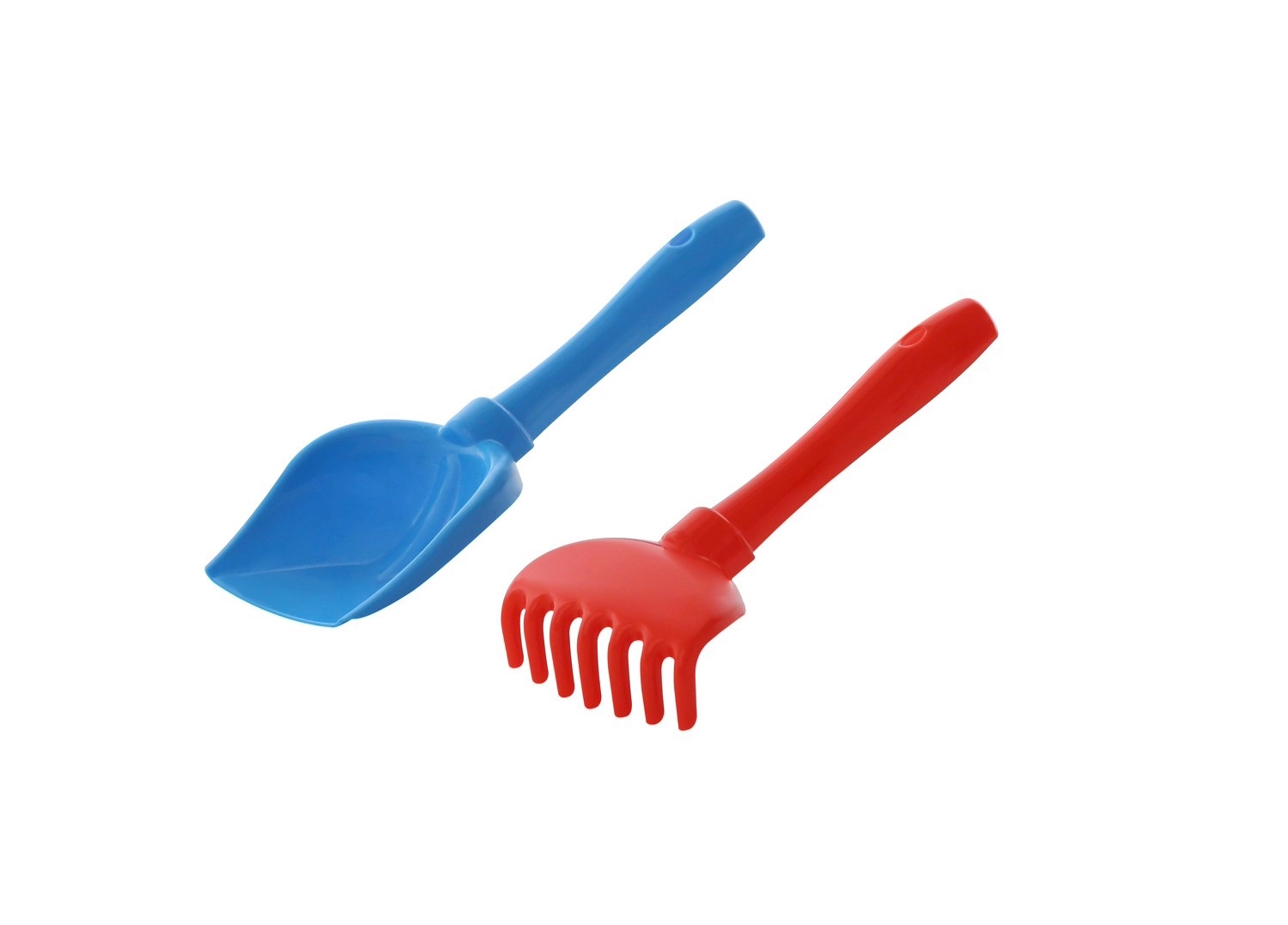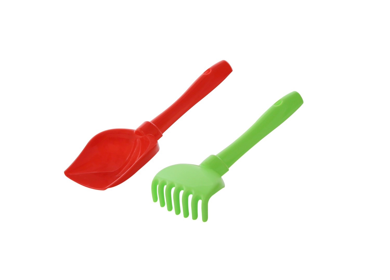 Kies een praktische helper voor buitenpret: een schepje om te scheppen en over te gieten, en harkjes om te egaliseren en structuren te maken. De set is verkrijgbaar in een kleurenmix – de concrete kleuruitvoering leveren wij volgens de actuele voorraadbeschikbaarheid.