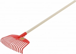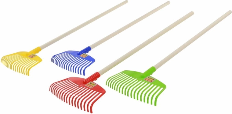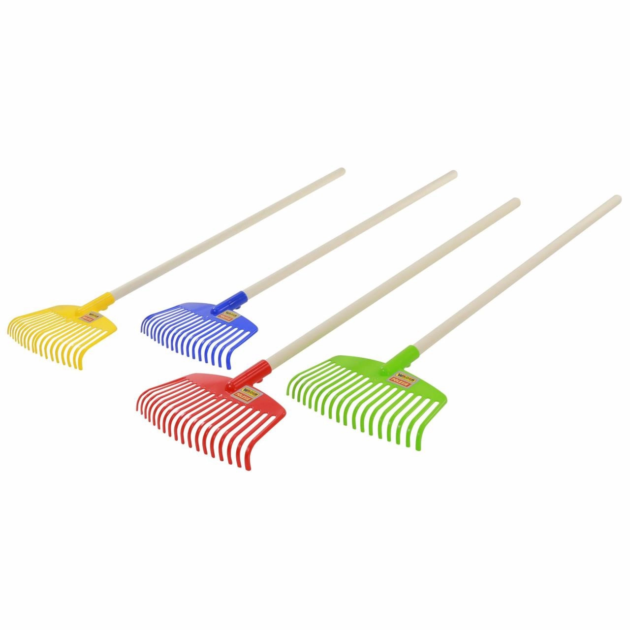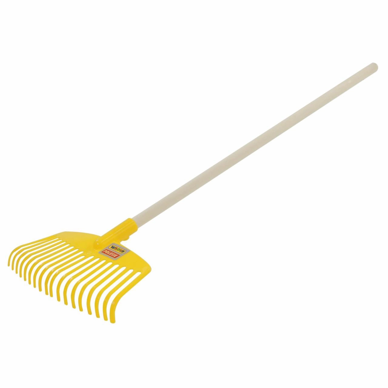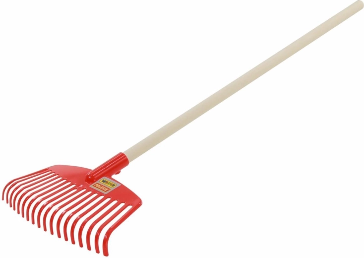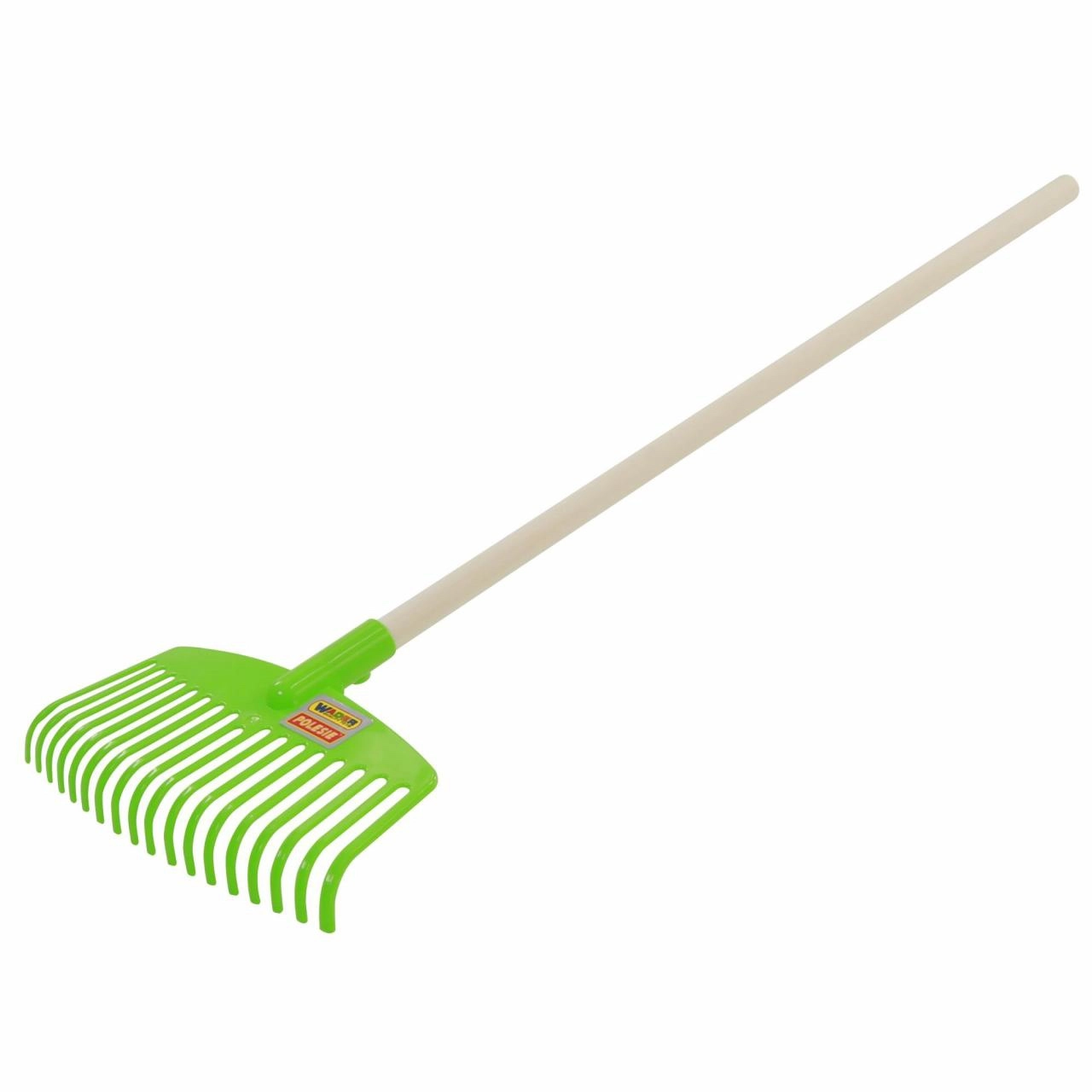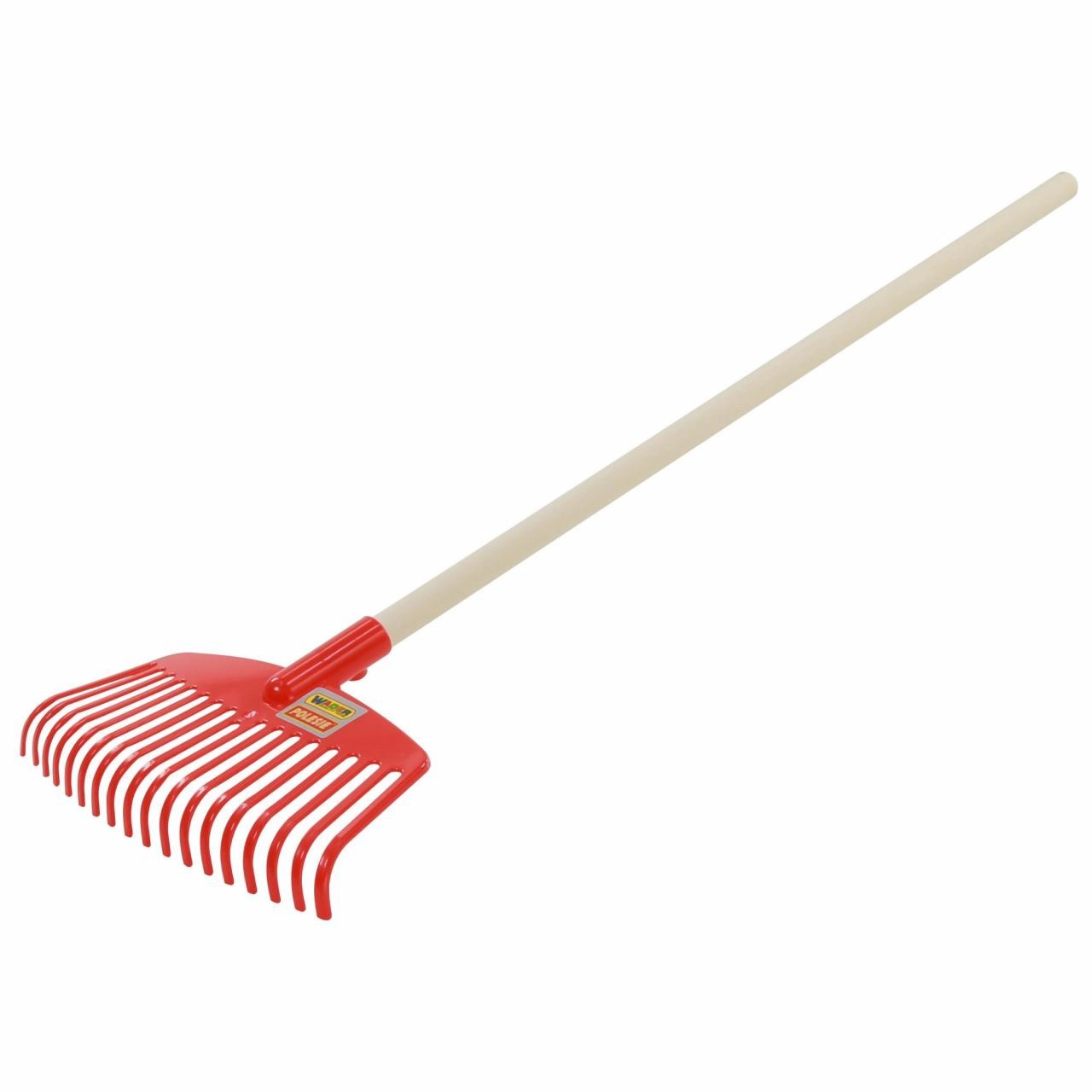 Het kinderharkje van Wader Quality Toys maakt kleine tuiniers en zandbakbouwers blij. Dankzij de combinatie van stevig kunststof en een houten handvat is het sterk, duurzaam en ligt het prettig in de hand. De langere constructie maakt het harken van zand en lichte tuinafvalresten eenvoudiger.