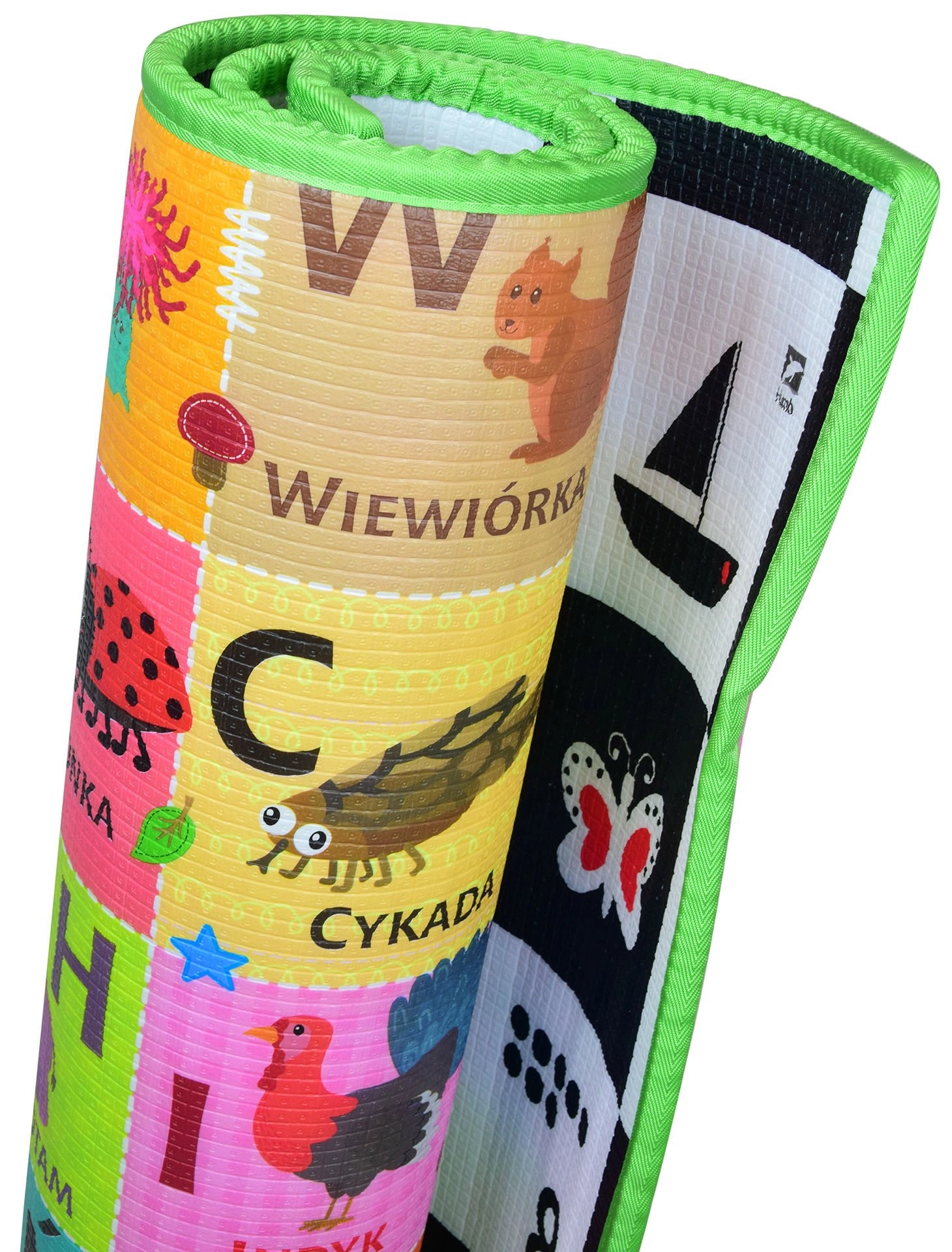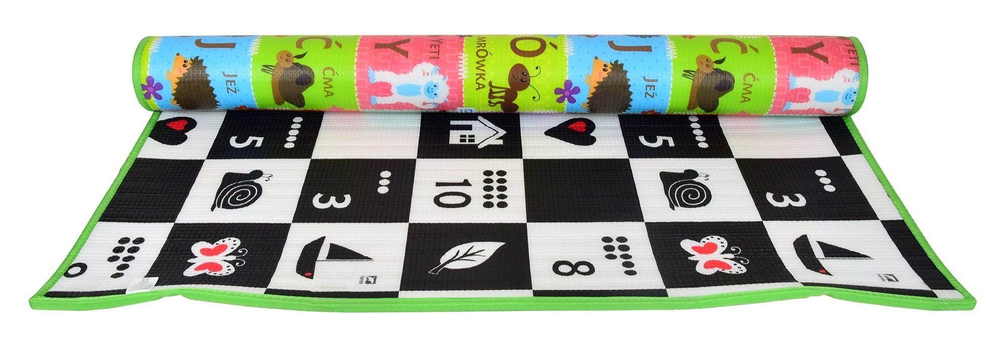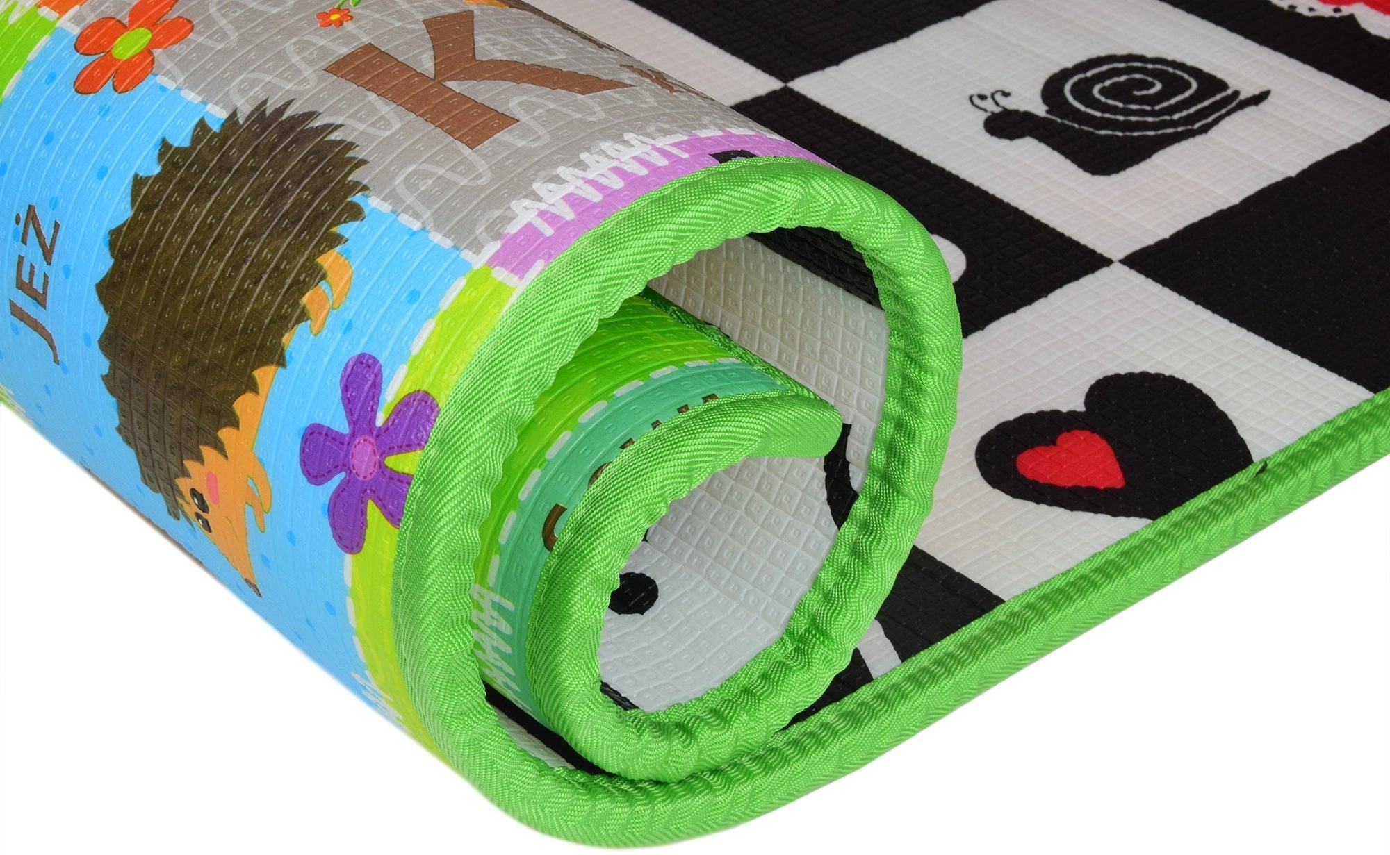 De mat is gemaakt van veilig, niet-toxisch en reukloos EPE-schuim, bevat geen formamide, ftalaten, PVC of BPA en voldoet aan EN71-1, EN71-2, EN71-3 en REACH. Hij is waterdicht, onderhoudsvriendelijk en dankzij het fijn reliëf ook antislip. Snel oprollen maakt meenemen gemakkelijk – een rits-draagtas is inbegrepen.