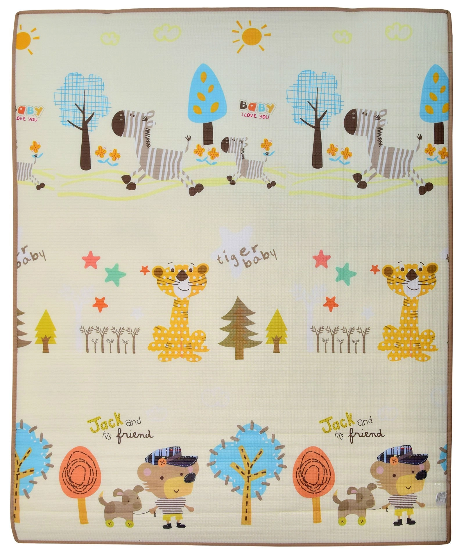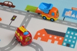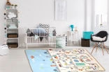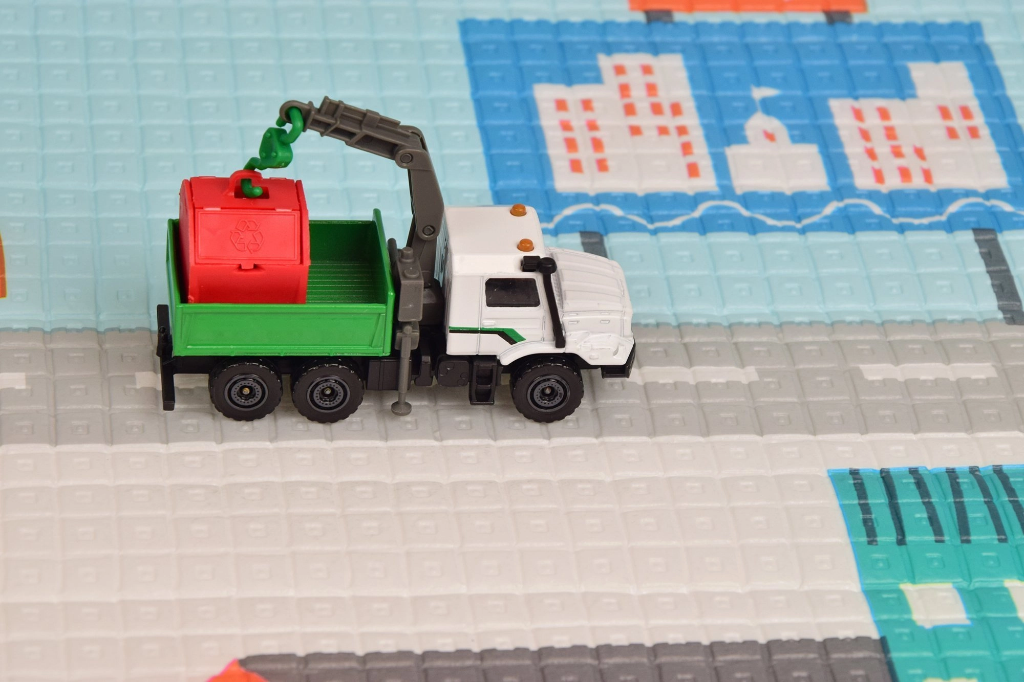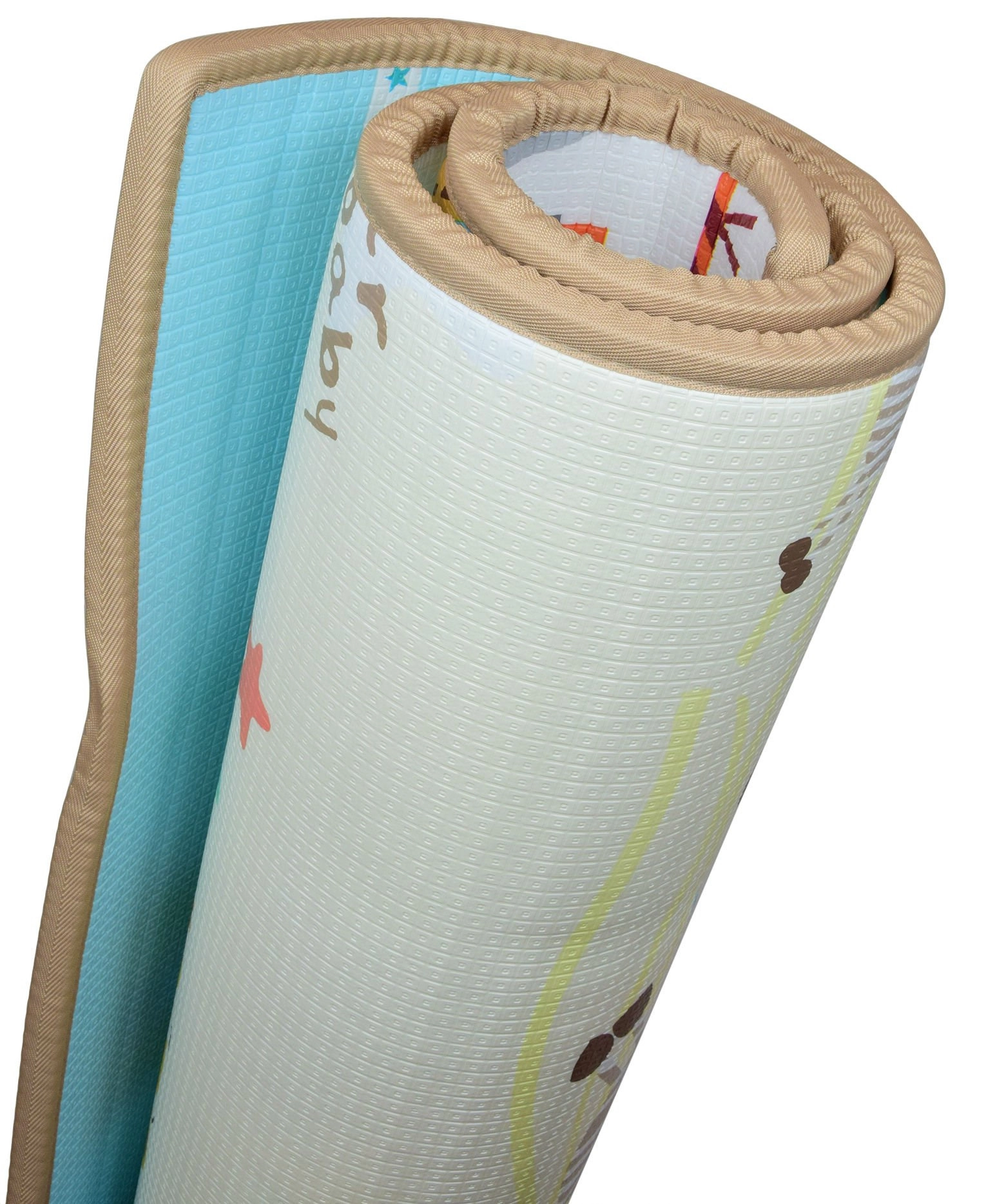 De ene zijde met een stads- en wegenprint stimuleert creatief spelen met autootjes, de andere zijde met schattige dieren prikkelt de fantasie en creëert een rustige sfeer.
