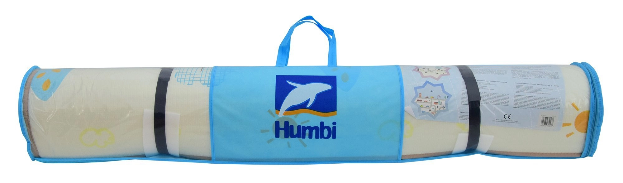 Inclusief lichte HUMBI-draagtas met handvatten en rits. Zorgt voor schone en comfortabele opslag en transport van de mat in huis, in de tuin of onderweg.