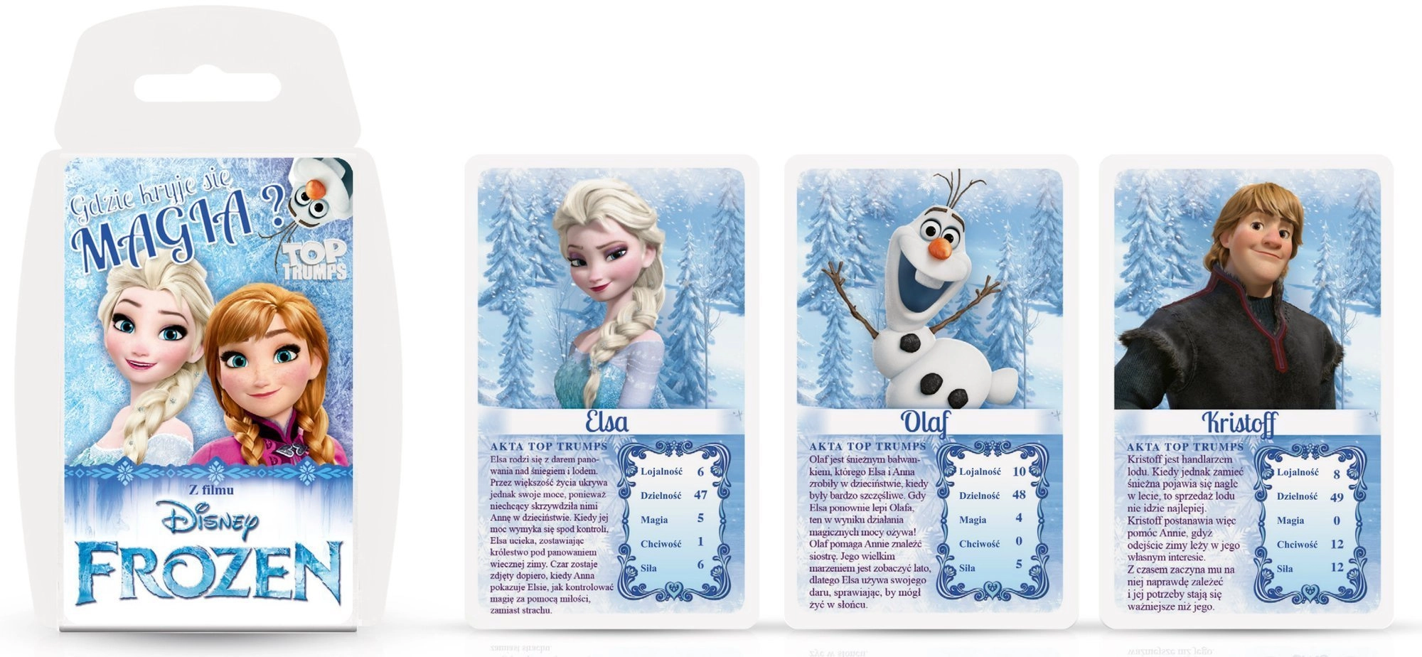 Top Trumps is een populair kaartspel dat gezinnen al decennialang vermaakt. In de Frozen-editie ontmoet je helden uit de populaire DISNEY-film en vergelijk je hun eigenschappen, zoals magie, moed en wijsheid. Het doel is om de hogere waarde te kiezen en kaarten van je tegenstanders te winnen – de winnaar is degene die het hele deck verzamelt.
