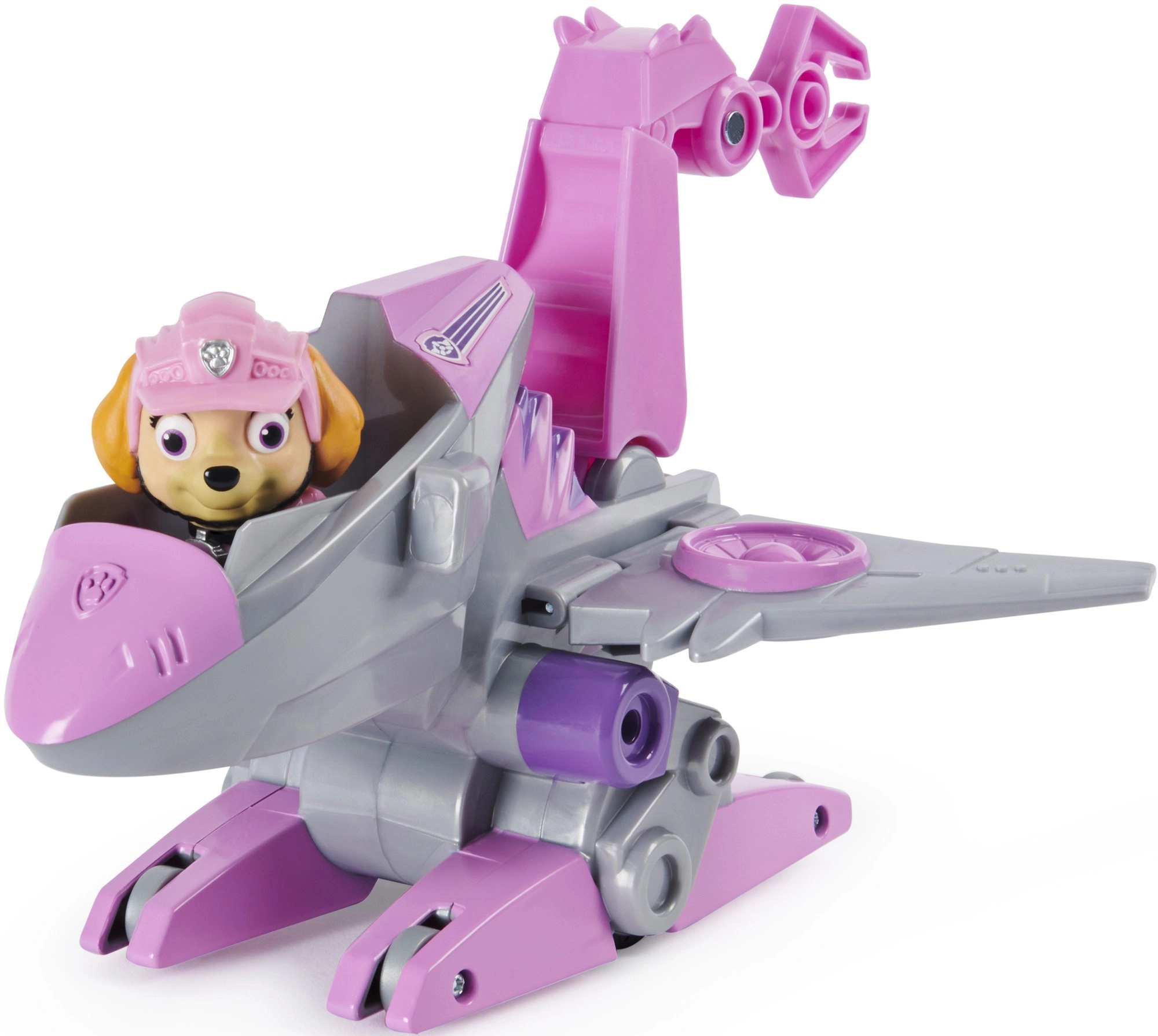 • Inhoud van de set: Skye-figuur, springend voertuig met vleugels en grijper, kleine dinosaurus – verrassing