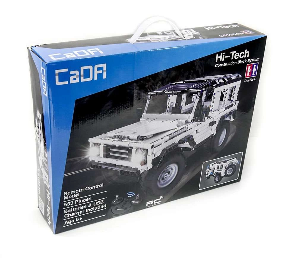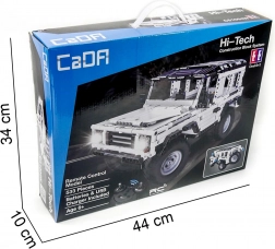 Ontdek de CaDA bouwset uit de Hi‑Tech serie, waarmee je een op afstand bestuurbare witte terreinwagen met 533 stukjes bouwt. Het model heeft deuren die open kunnen, realistische details en dankzij de 2,4 GHz afstandsbediening kun je het eenvoudig besturen tot wel 25 meter. Inclusief 3,6 V 400 mAh accu en USB‑lader – plaats batterijen in de controller en het plezier kan beginnen.