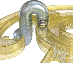 De heldere behuizing biedt perfect overzicht over de route. Door de bal te kantelen en te draaien navigeer je het metalen balletje soepel door de volledige 3D-doolhof.