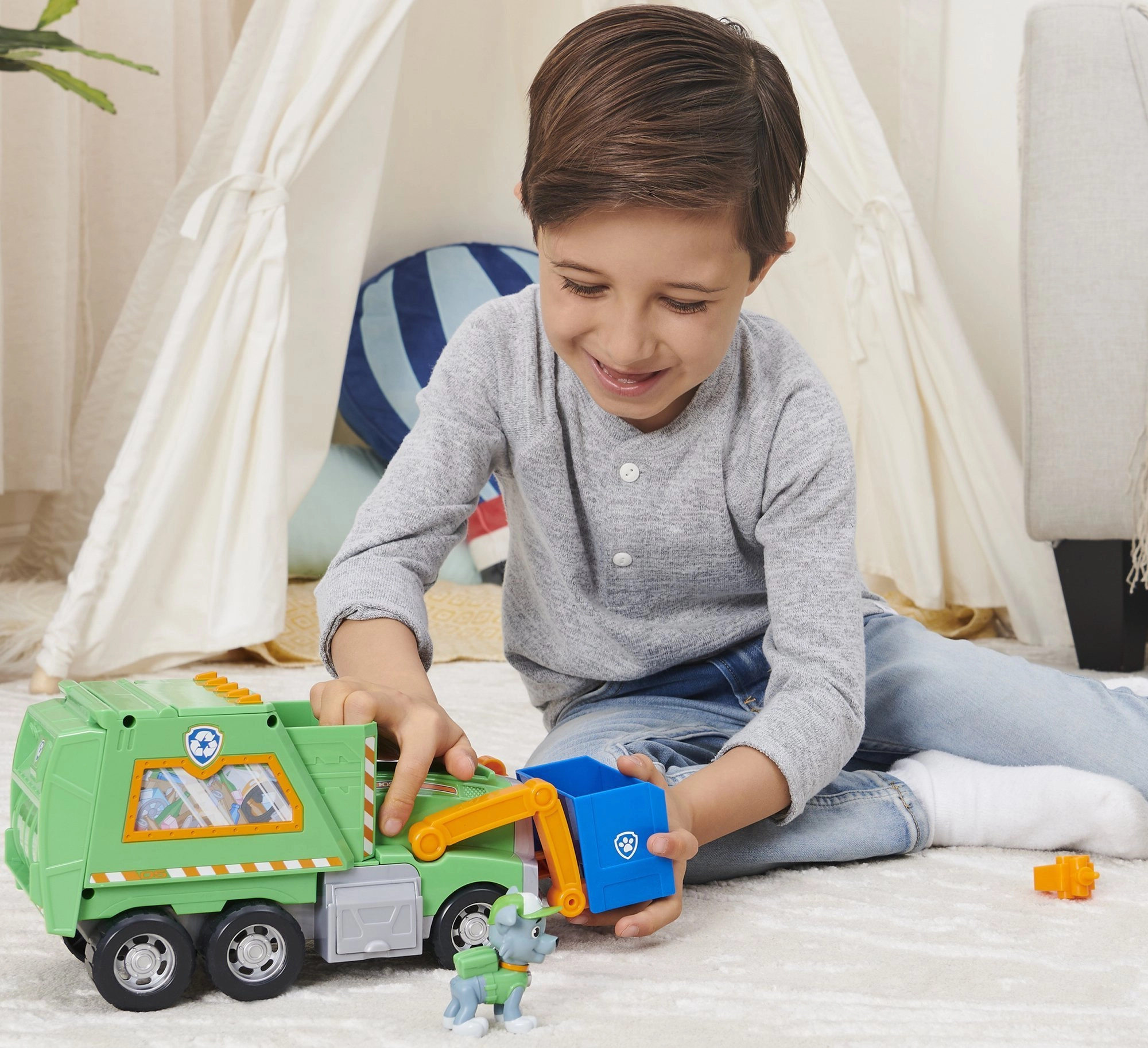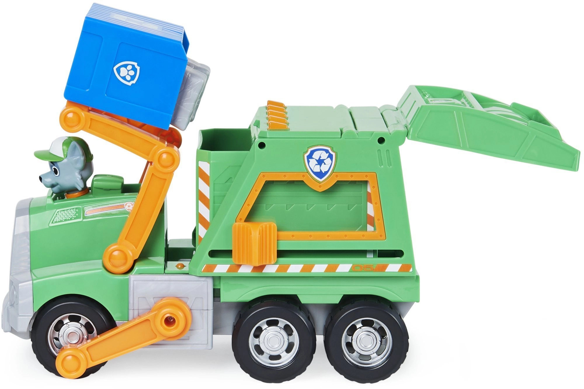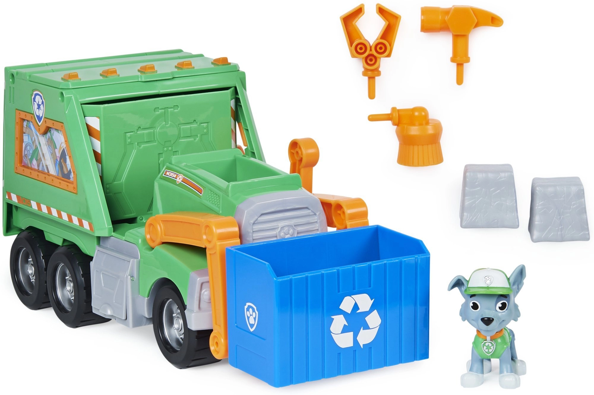Ga op reddingsmissie voor een schonere stad met Rocky en zijn groene recyclingwagen. Kinderen kunnen de blauwe bak optillen, “afval” laden en leren sorteren. Authentieke details uit de serie Paw Patrol stimuleren de fantasie en rollenspellen.