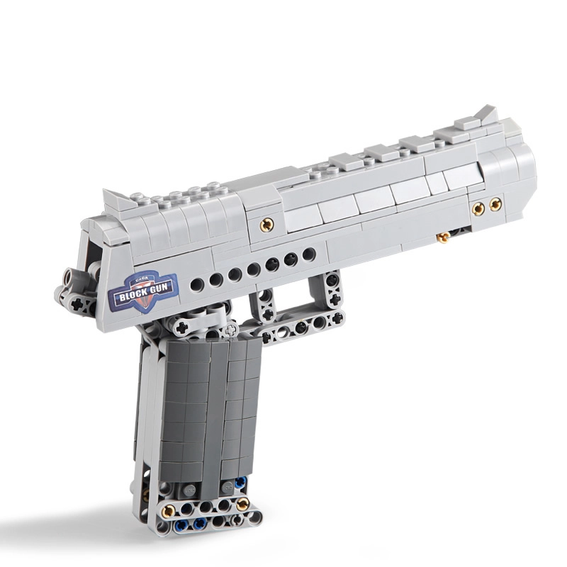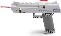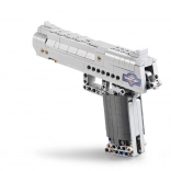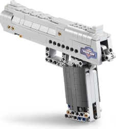 De CADA Desert Eagle Falcon bouwset brengt een realistisch uitgewerkt model van een zilverkleurig pistool met aandacht voor detail. Dankzij technic-elementen heeft het model een werkende trekker en bewegende delen, wat de bouw- en speelervaring versterkt. In de verpakking zitten 5 kunststof patronen met een veilige afgeronde punt.