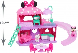 De set bevat 2 figuren (ongeveer 7,5 cm hoog) en veel accessoires, inclusief meubels. Kinderen kunnen de figuurtjes van de glijbaan laten gaan, de trapjes op laten klimmen en het interieur steeds opnieuw inrichten. Ideaal als cadeau voor kinderen vanaf 3 jaar en ook perfect als uitbreiding van een Minnie-speelcollectie.