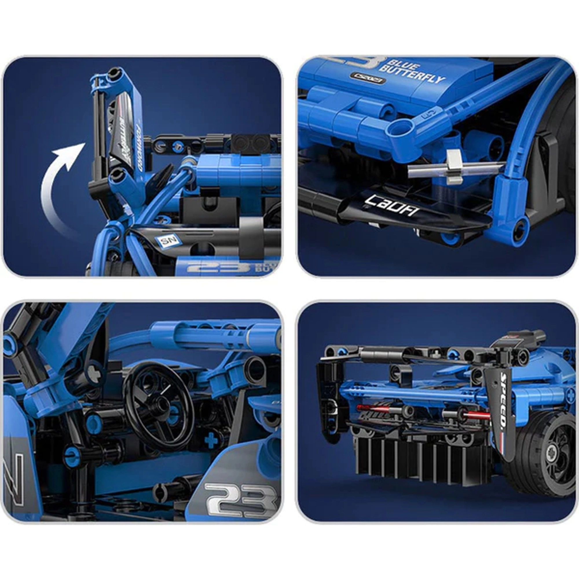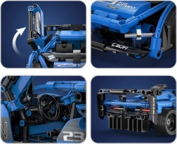 Het model in elegant blauw met zwarte accenten biedt te openen deuren, een verstelbare spoiler en een functioneel stuur. De onderdelen zijn compatibel met andere CADA-sets, zodat je je collectie kunt uitbreiden en nog grotere constructies kunt maken. De verpakking is representatief, ideaal als cadeau voor kinderen vanaf 6 jaar en enthousiaste bouwers.