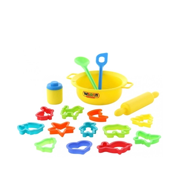 Complete bakset 15 stuks voor kleine en grote bakkers. Bevat een deegroller 18 cm, twee mixers, een kom met een diameter van 14,5 cm en 11 uitsteekvormpjes. Kleurenmix afhankelijk van de actuele voorraadbeschikbaarheid.