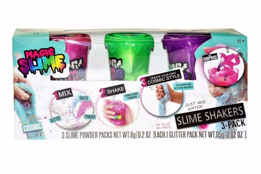 De Slime Shakers set is een geweldige keuze voor alle kleine makers. Voeg gewoon water toe aan de shaker, schud en binnen een mum van tijd heb je slijm klaar om mee te spelen. Elke shaker bevat slijmpoeder en decoraties, waarmee je unieke glanzende en kleurrijke combinaties kunt maken. Er zit ook een figuurtje bij, dat het gemaakte slijm een speels accent geeft.