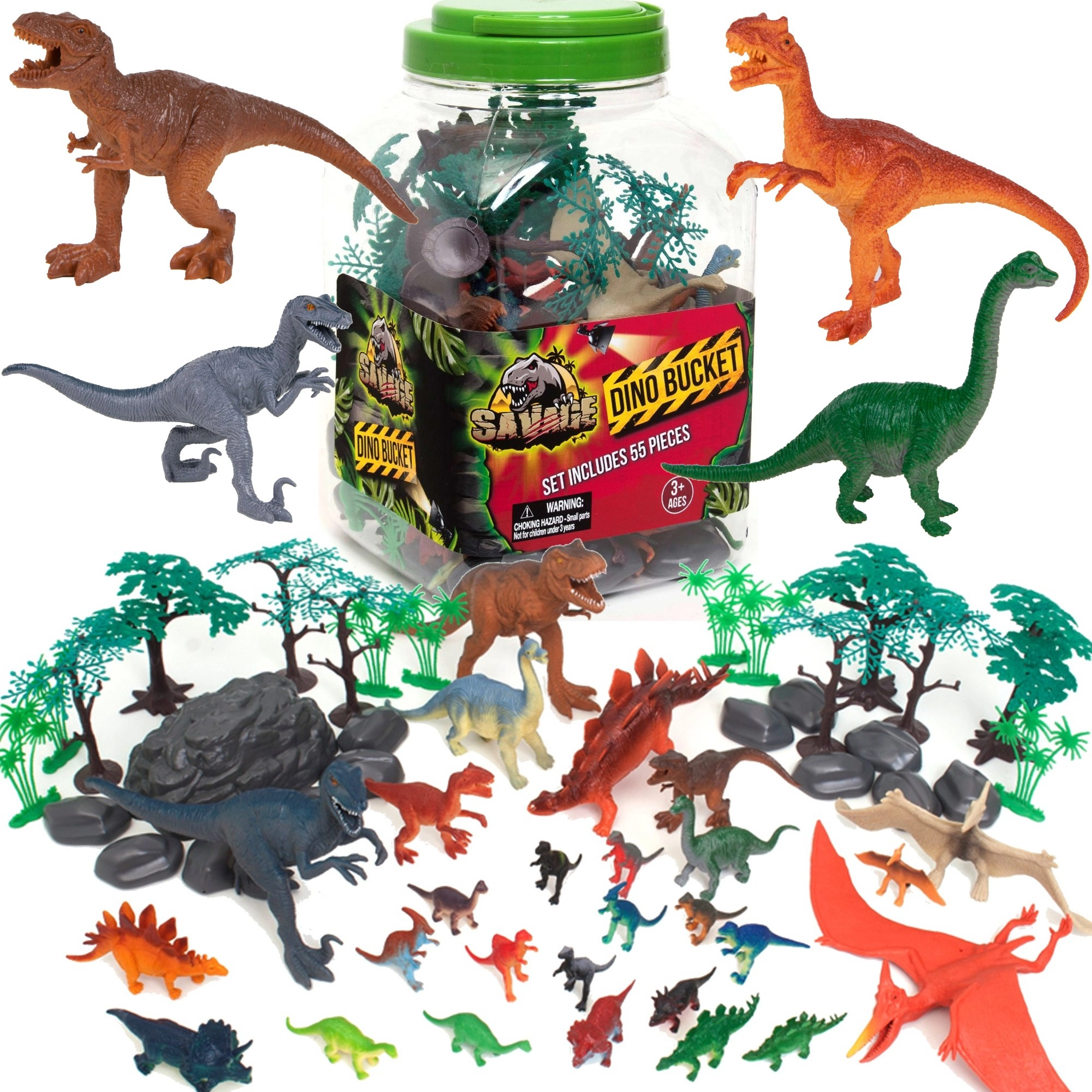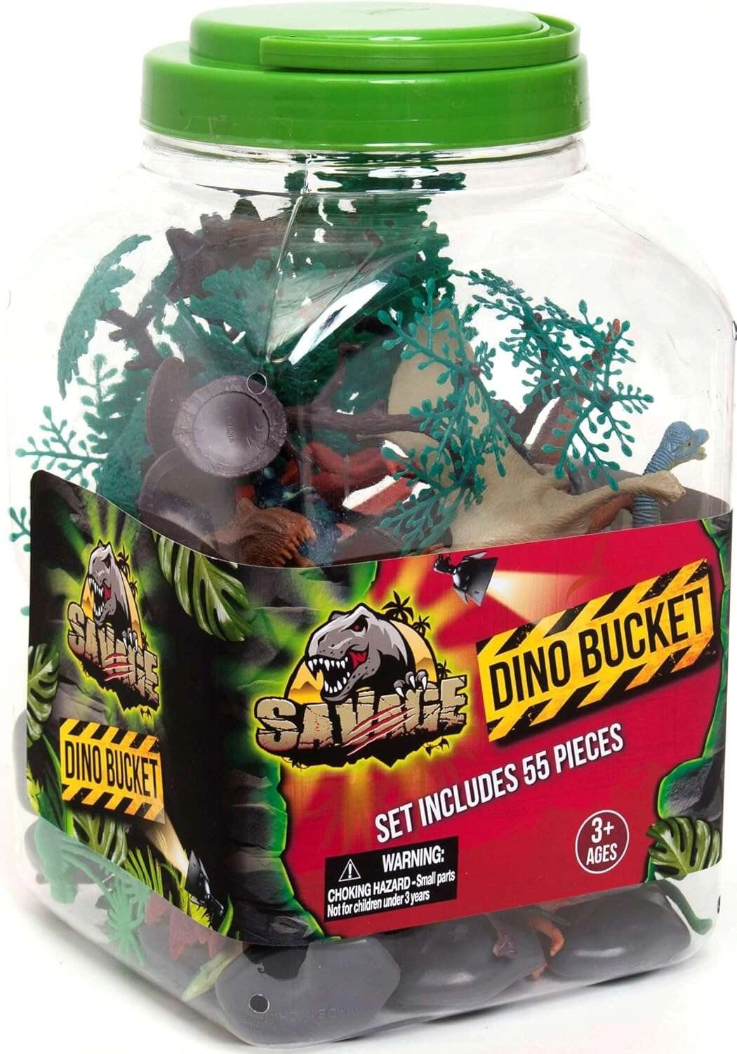 Alles is overzichtelijk opgeborgen in een afsluitbare emmer met handvat, ideaal voor thuis en onderweg. Perfect als cadeau voor kinderen vanaf 3 jaar – uren speelplezier en een geweldige basis voor het bouwen van een eigen prehistorische wereld.
