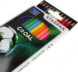 Ontdek het plezier van tekenen met een set van 12 kleurpotloden met voetbalthema. Dankzij het zeskantige profiel liggen de potloden prettig in de hand, rollen ze minder snel van de tafel en ondersteunen ze zowel nauwkeurig werk als subtiele arceringen. Voorgeslepen kernen en intense pigmenten zorgen voor een mooie, egale dekking.