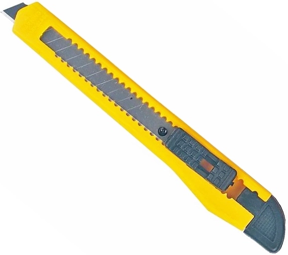 De veiligheidsknop voor de vergrendeling van het mes voorkomt onbedoeld in- of uitschuiven, zodat je met vertrouwen en precisie kunt werken. Ideaal voor het snijden van papier, karton, verpakkingstape en kleine materialen.
