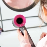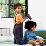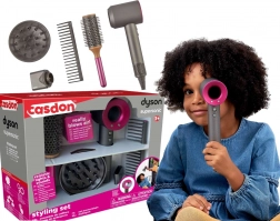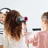 De kinder-kappersset van CASDON met de iconische Dyson Supersonic föhn biedt kinderen een authentieke salonervaring. De speelgoedföhn blaast lucht, heeft lichteffecten en dankzij de magnetische/verwisselbare opzetstukken kun je de droogstijl aanpassen. De meegeleverde ronde borstel en brede kam stimuleren de fantasie bij het creëren van kapsels voor kinderen, poppen en vriendjes.