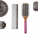 De ronde borstel en de brede kam vullen de föhn aan en maken complete styling mogelijk, van ontwarren tot de finale vormgeving van het kapsel.