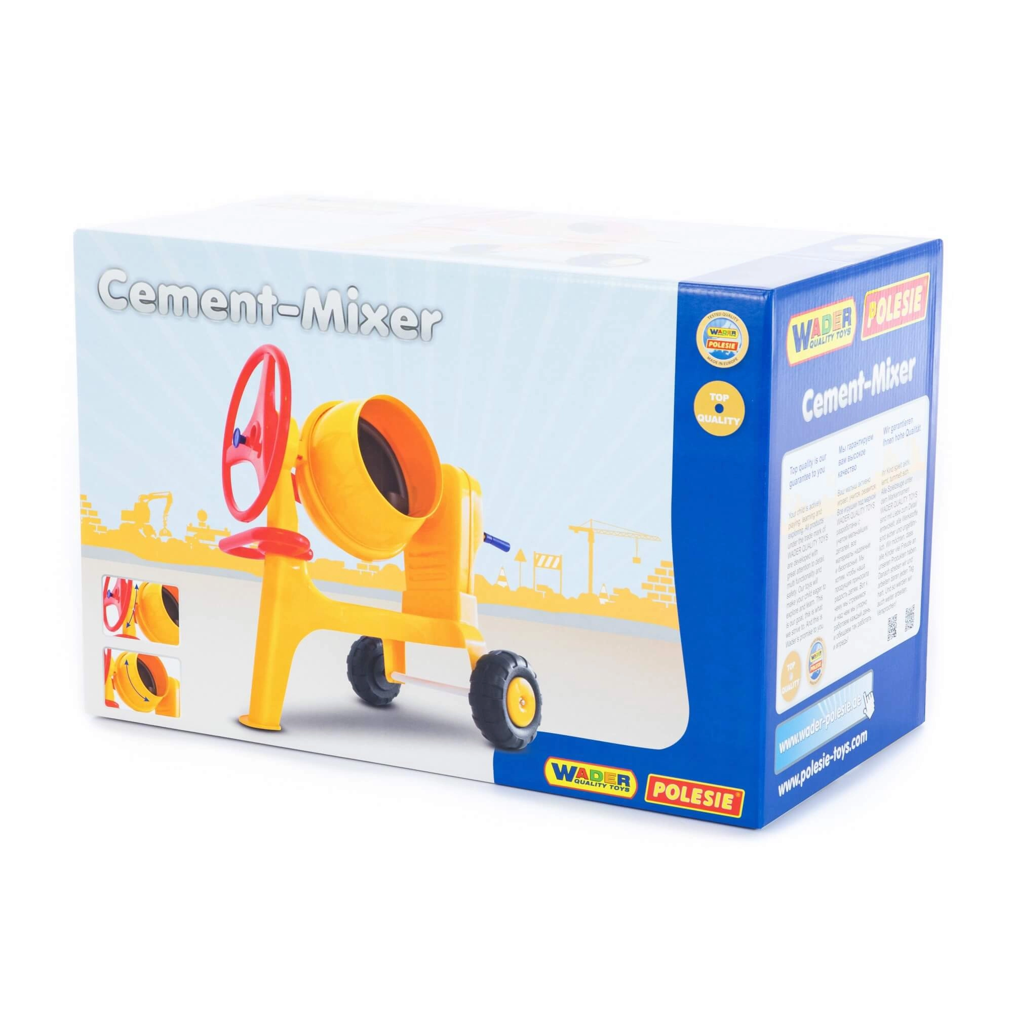 Spelen met de betonmolen stimuleert de ontwikkeling van fysieke vaardigheden, coördinatie, spierkracht en technisch probleemoplossend vermogen. Dankzij de duurzame uitvoering is hij ideaal voor binnen en buiten, bijvoorbeeld op de speelplaats of in de zandbak.