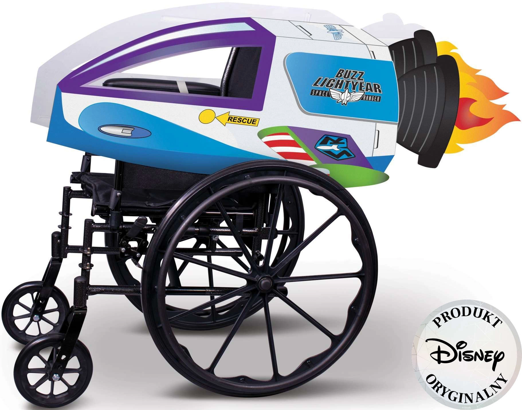 Ga op een oneindige reis door de ruimte met de raket van Buzz Lightyear! Deze stijlvolle aanbouw voor een kinderrolstoel maakt van elke rit een avontuur. Het kostuum is gemaakt van duurzaam vilt, is licht, comfortabel en ontworpen voor niet-elektrische rolstoelen met wielen van 24" (61 cm). De officiële DISNEY-licentie garandeert authentieke details en hoogwaardige afwerking.