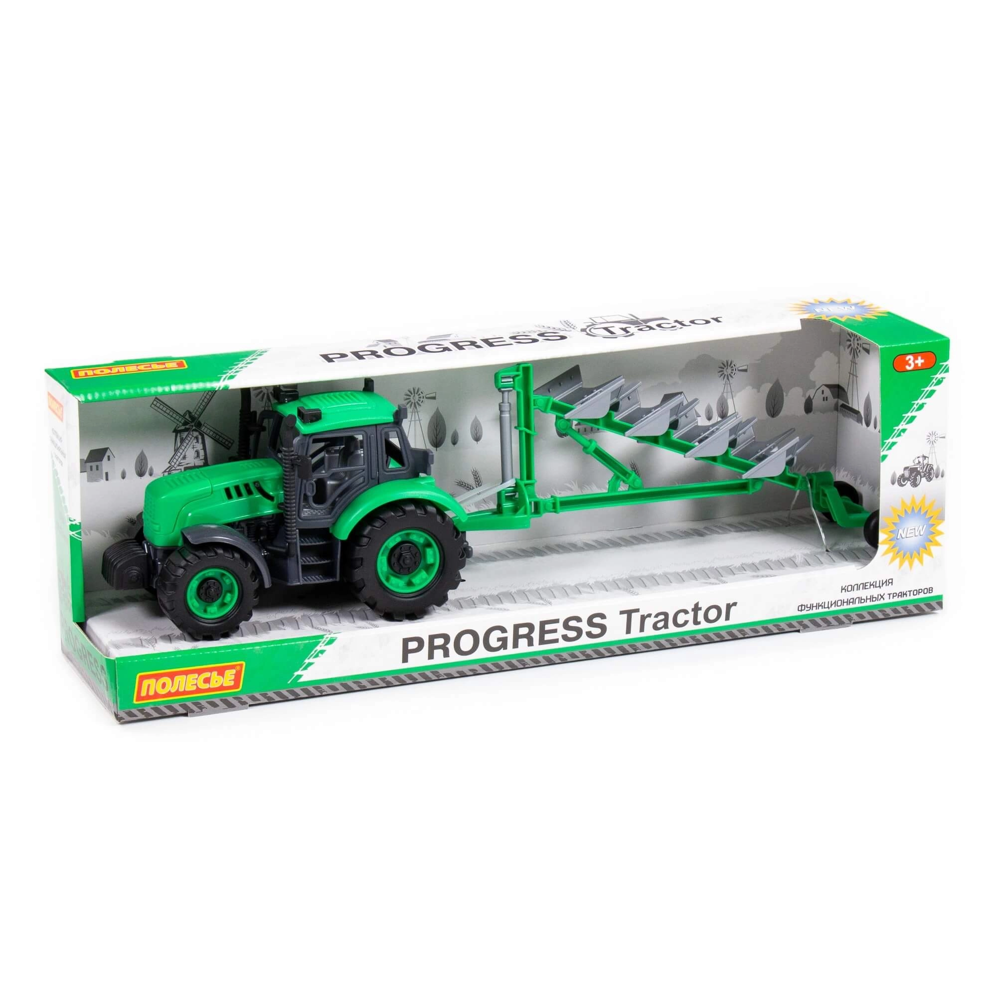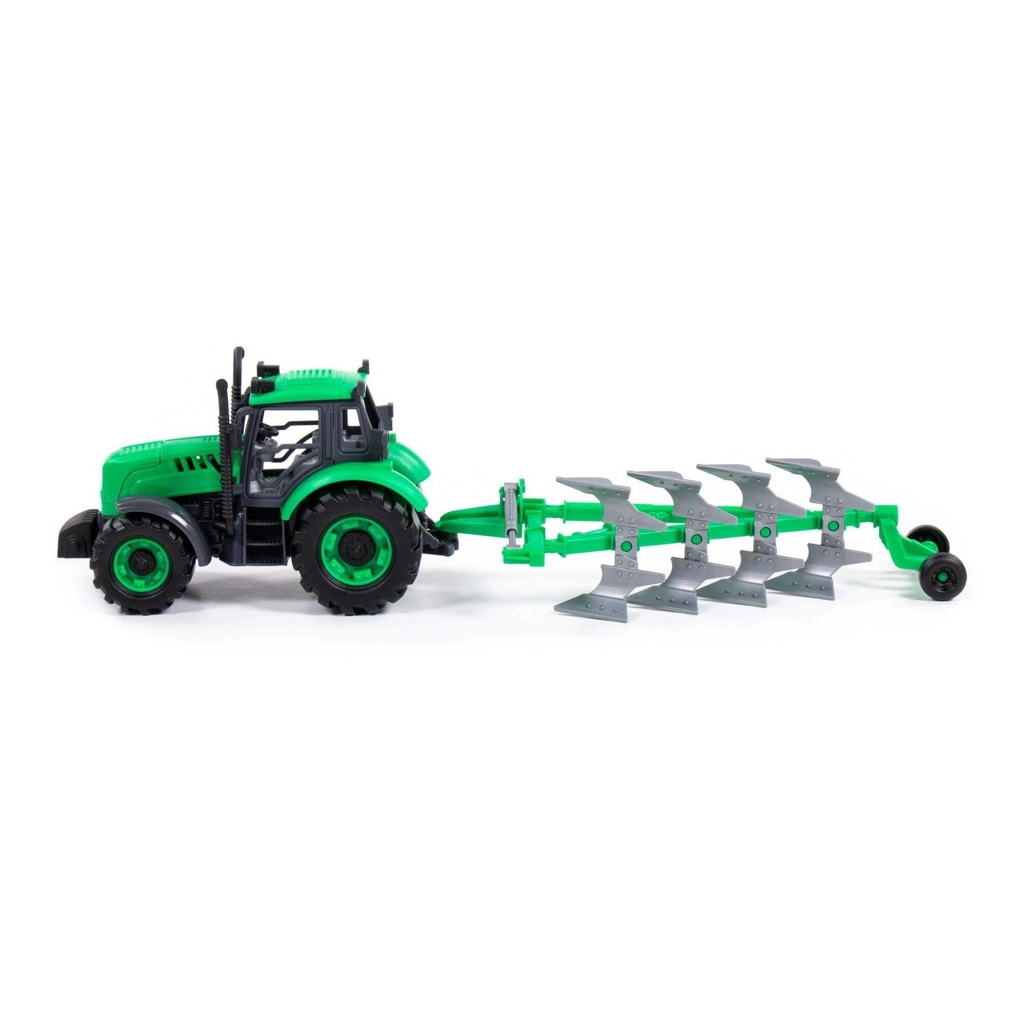 Inclusief een aanhanger met ploeg, waarvan de werkzijden verwisselbaar zijn, wat het spel gevarieerd maakt en kinderen de basis van landbouwactiviteiten bijbrengt. De speelgoedset wordt geleverd in een kleurrijke geschenkverpakking, geschikt als cadeau voor jongens en meisjes.