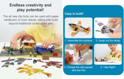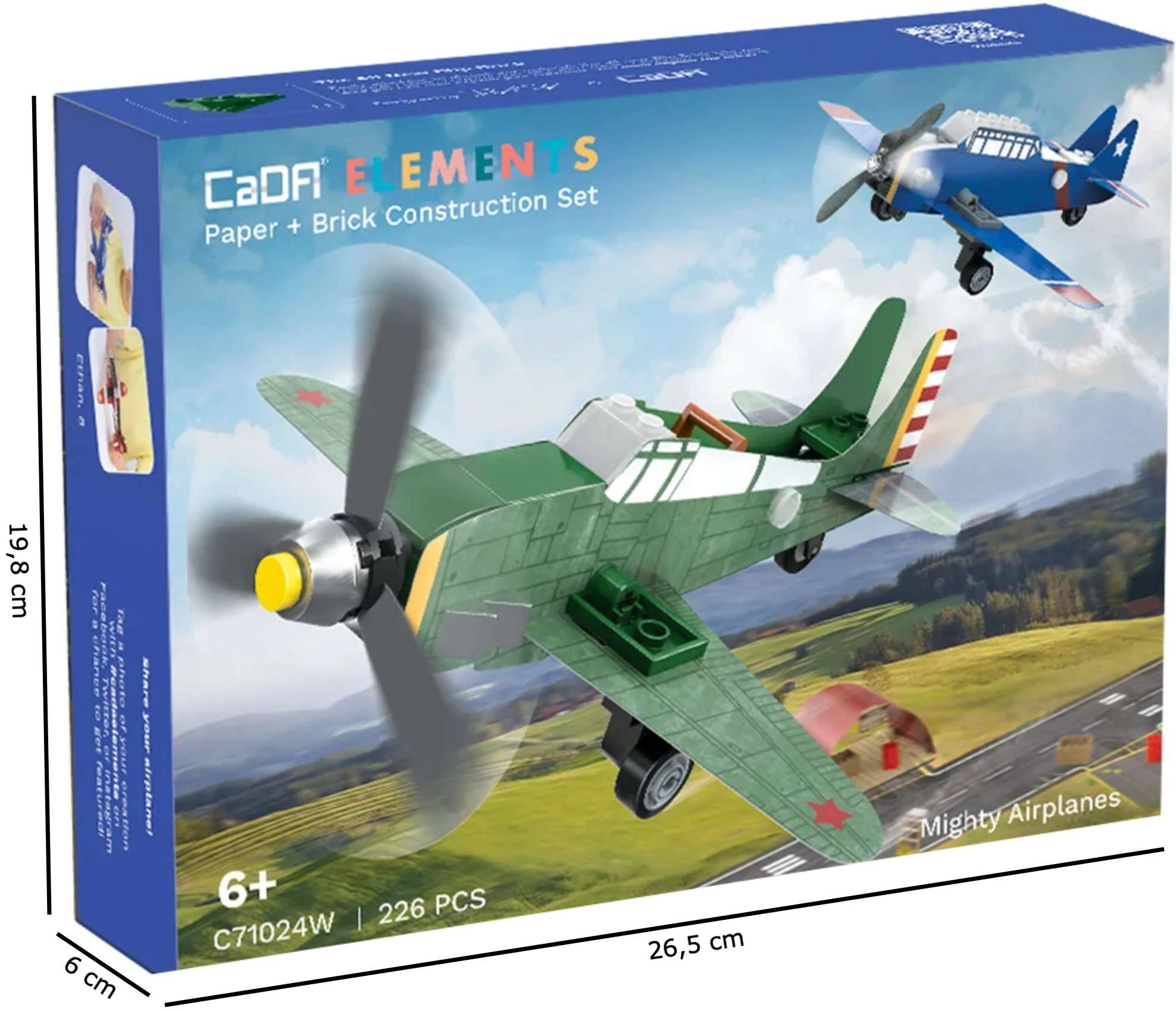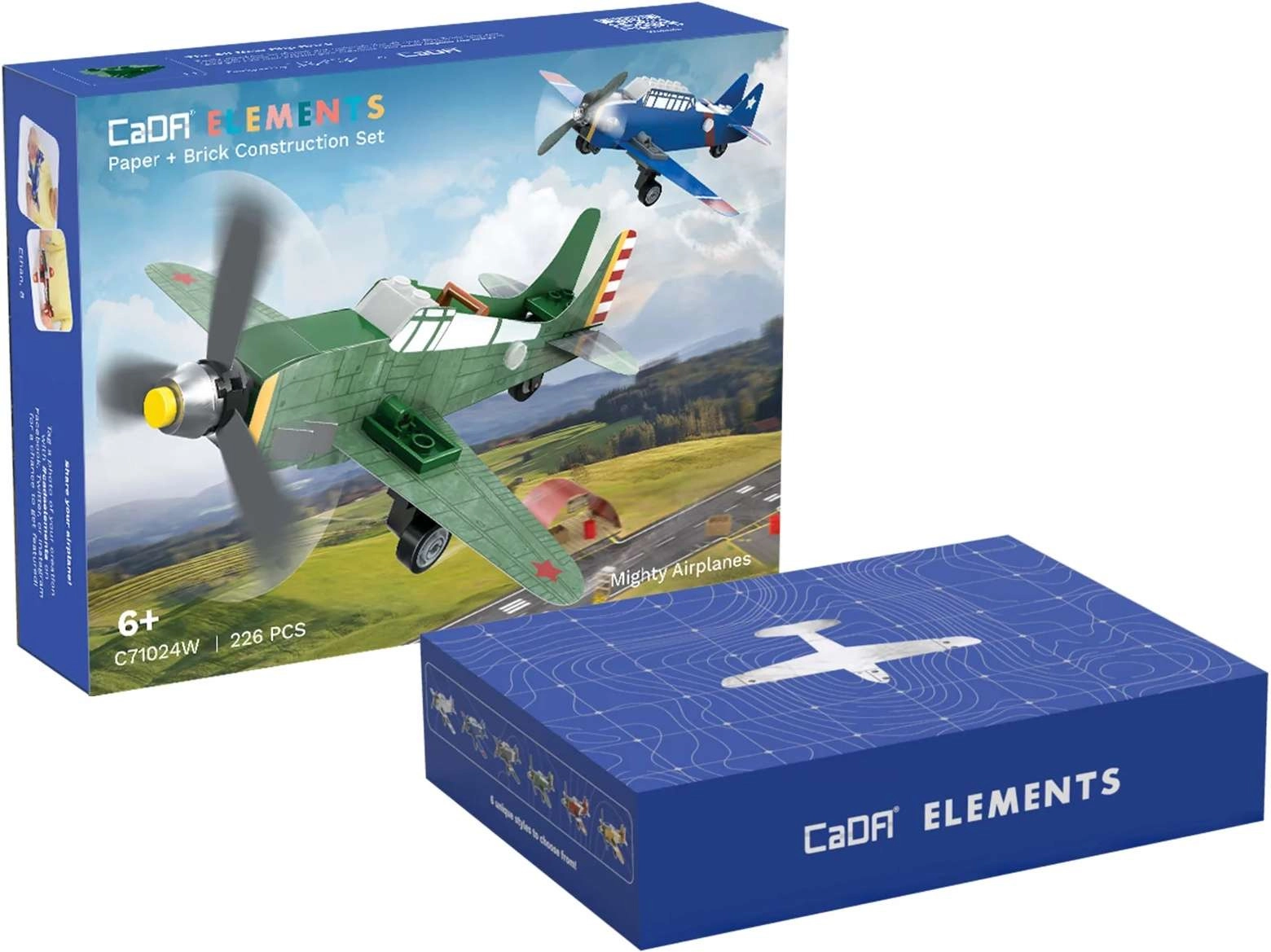 Ontdek de creatieve CADA Elements bouwset waarmee kinderen tot 6 verschillende papieren en blokvliegtuigen kunnen bouwen, inclusief een landingsbaan. De set bevat 226 onderdelen, waaronder clip-blokjes om te verbinden met papier of textiel, decoratieve panelen en andere accessoires. De elegante verpakking dient als display en maakt deel uit van het spel – een geweldig cadeau voor jonge bouwers vanaf 6 jaar.