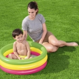 Op hete zomerdagen is er voor de kleintjes geen betere verfrissing dan een opblaasbaar zwembadje! Dit badje is geschikt als peuterpoel. Kleurrijk opblaasbaar zwembad met drie ringen, ideaal voor in de tuin en gegarandeerd veel plezier voor kinderen. De bodem van verzacht PVC voorkomt schaafplekken en werkt antislip.