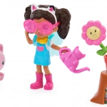 Deze schattige set neemt kinderen mee in de wereld van Gabby’s Dollhouse. Gabi draagt haar iconische haarband met kattenoortjes, roze bril en kleurrijke outfit. Bij het indrukken van haar hoofd zakt de bril magisch op haar neus of gaat weer omhoog, wat zorgt voor een extra interactieve dimensie. Ook inbegrepen zijn de feeënkat Kitty Fairy, een bloem in een bloempot en een geheim accessoire voor creatieve tuinscènes.