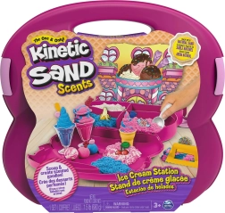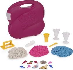 Geurende Kinetic Sand voelt als nat zand, maar je handen blijven helemaal droog. Dankzij de unieke kinetische eigenschappen kleven de korrels aan elkaar, houdt het zand zijn vorm en valt het niet uiteen. Kinderen kunnen letters, bouwwerken en “ijs”-lekkernijen vormen – de fantasie kent geen grenzen.