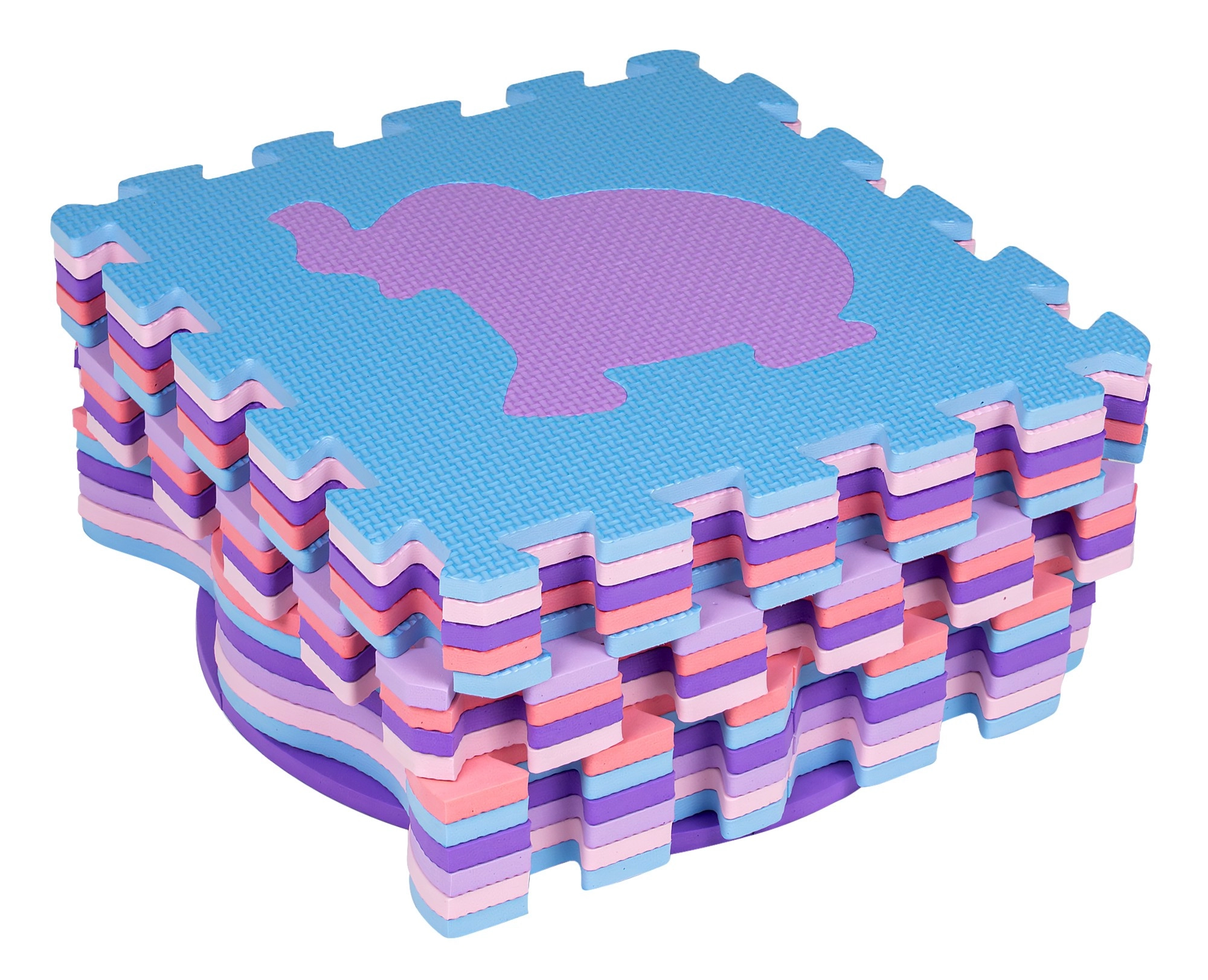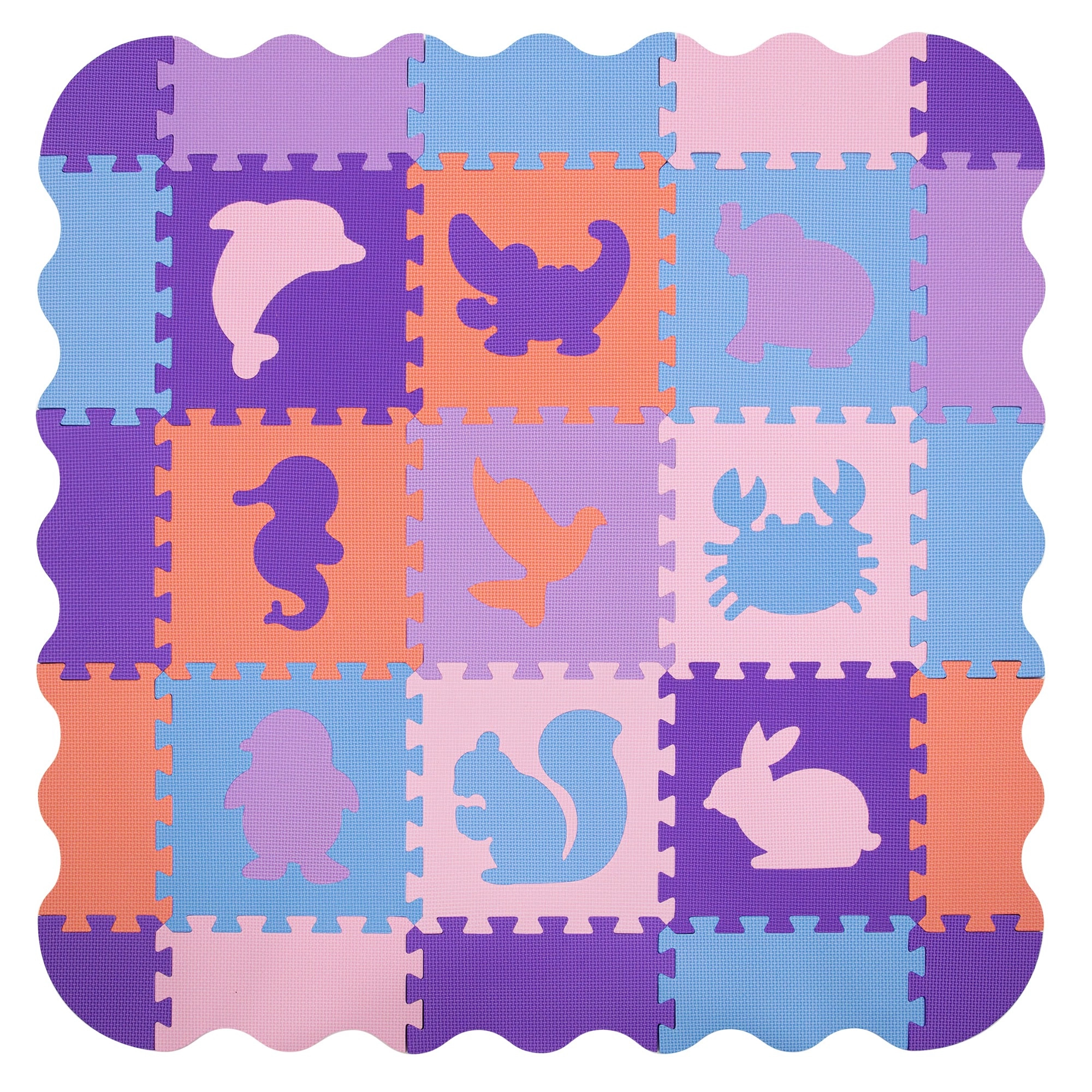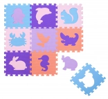 Het veilige EVA-materiaal is elastisch, schokabsorberend en isoleert uitstekend tegen kou vanaf de vloer. Het getextureerde oppervlak is antislip voor de eerste kruip- en stapmomenten. Elk deel heeft een uitneembaar dierenmotief (pinguïn, dolfijn, eekhoorn, krab, duif, krokodil, konijn, zeepaardje, olifant), zodat kinderen hun fijne motoriek en logica oefenen.