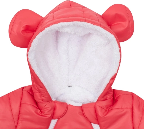 De capuchon met beeroortjes beschermt het hoofdje tegen de kou en geeft de overall een speelse uitstraling.