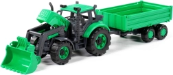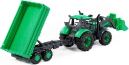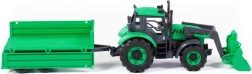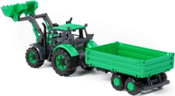 De set bevat een bakaanhanger die eenvoudig kan worden aangekoppeld en waarmee speelgoed, zand of blokken vervoerd kunnen worden. De openende motorkap met vergrendeling verhoogt het realisme en leert kinderen zorgvuldigheid bij de “service” van de machine.