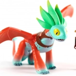 De draak in levendige oranje-rode tinten met turquoise accenten en het figuurtje met pantser vormen een perfect team voor luchtgevechten en verkenningstochten. Maak je klaar voor spannende vluchten en creatieve avonturen, thuis en onderweg.