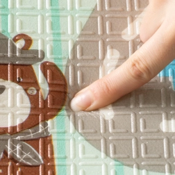 - Antisliptextuur met fijne reliëfstructuur voor zekerder kruipen en lopen, ondersteuning van de sensorische ontwikkeling.