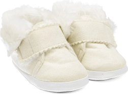 Deze beige babyslofjes van eco-suède houden voetjes warm dankzij de zachte fleece voering (100% polyester). De aansluitende pasvorm, ruime binnenkant en klittenbandsluiting maken aan- en uittrekken gemakkelijk en zorgen voor een zekere, niet-knellende grip.