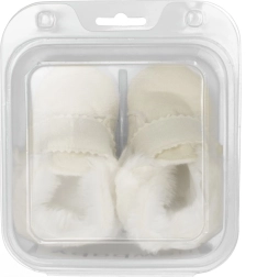 De slofjes zijn zeer licht, met een dunne synthetische PVC-zool zonder BPA – ideaal voor in de kinderwagen, op reis en om te relaxen. De binnenzoollengte is 10 cm, aanbevolen voor 0–3 maanden. Geleverd in een praktische geschenkdoos, ook perfect als cadeau voor een pasgeborene.